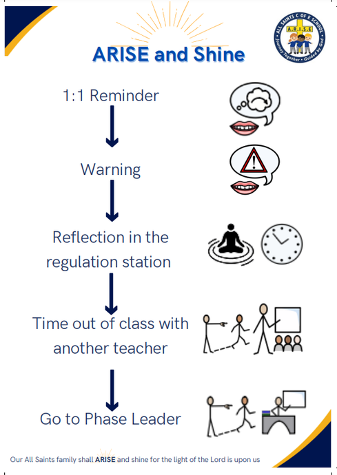 Staff follow a clear behaviour procedure if our school rules are broken. The procedure is laid out below.