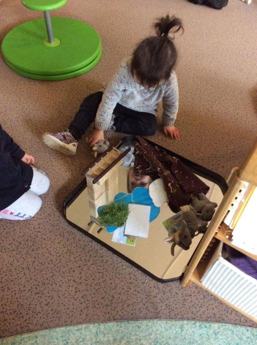 We have looked at traditional tales. We made gingerbread men out of play dough. We created story maps for the Three little pigs and explored and acted out the Billy Goats Gruff story.