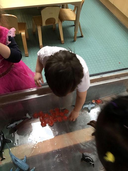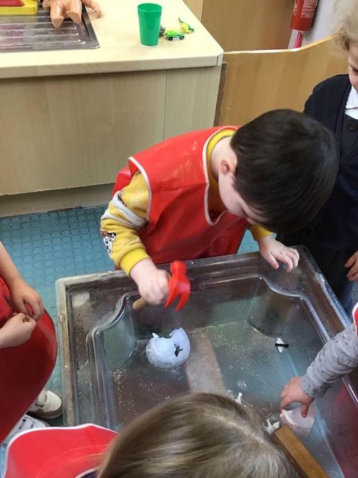 We have been learning about Winter Wonderland. We have explored ice in many ways. We rescued toy arctic animals from ice cubes. We watched ice melt. We painted using frozen paint.