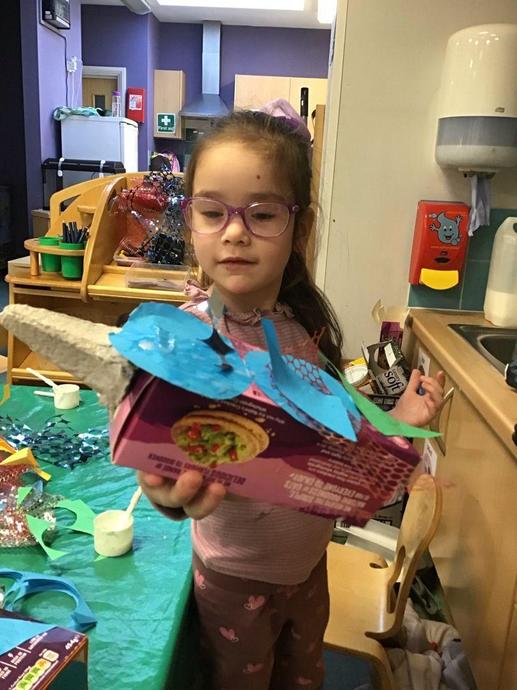 We have painted arctic animals and made telescopes to look at the stars and made rockets pretending to blast in to space.