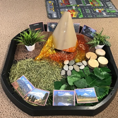 The children have learnt dinosaur names and explored how dinosaurs looked and moved, through stories, non-fiction books and children's videos. They drew dinosaur pictures, went on a dinosaur hunt in the garden, and sang and danced to dinosaur songs. As part of this theme, the children learnt about volcanoes and took part in an experiment in the garden where we made a volcano using a bottle of coke and Mentos.