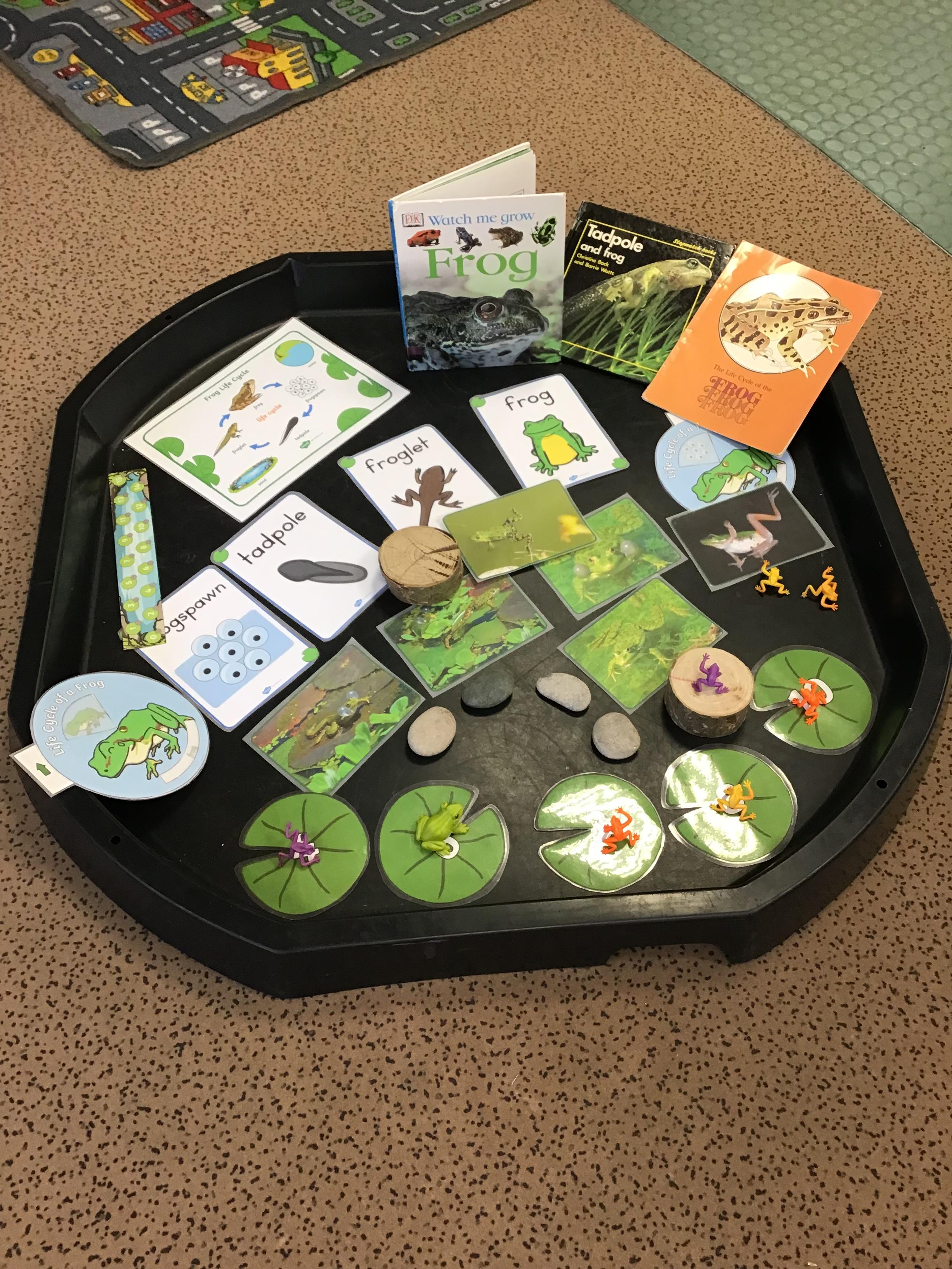 In the first two weeks the children learnt about the life cycles of butterflies and frogs, with the story books ‘The Very Hungry Caterpillar’ and ‘The Teeny-Weeny Tadpole’ to introduce these with. The children made butterfly paintings and frog faces.