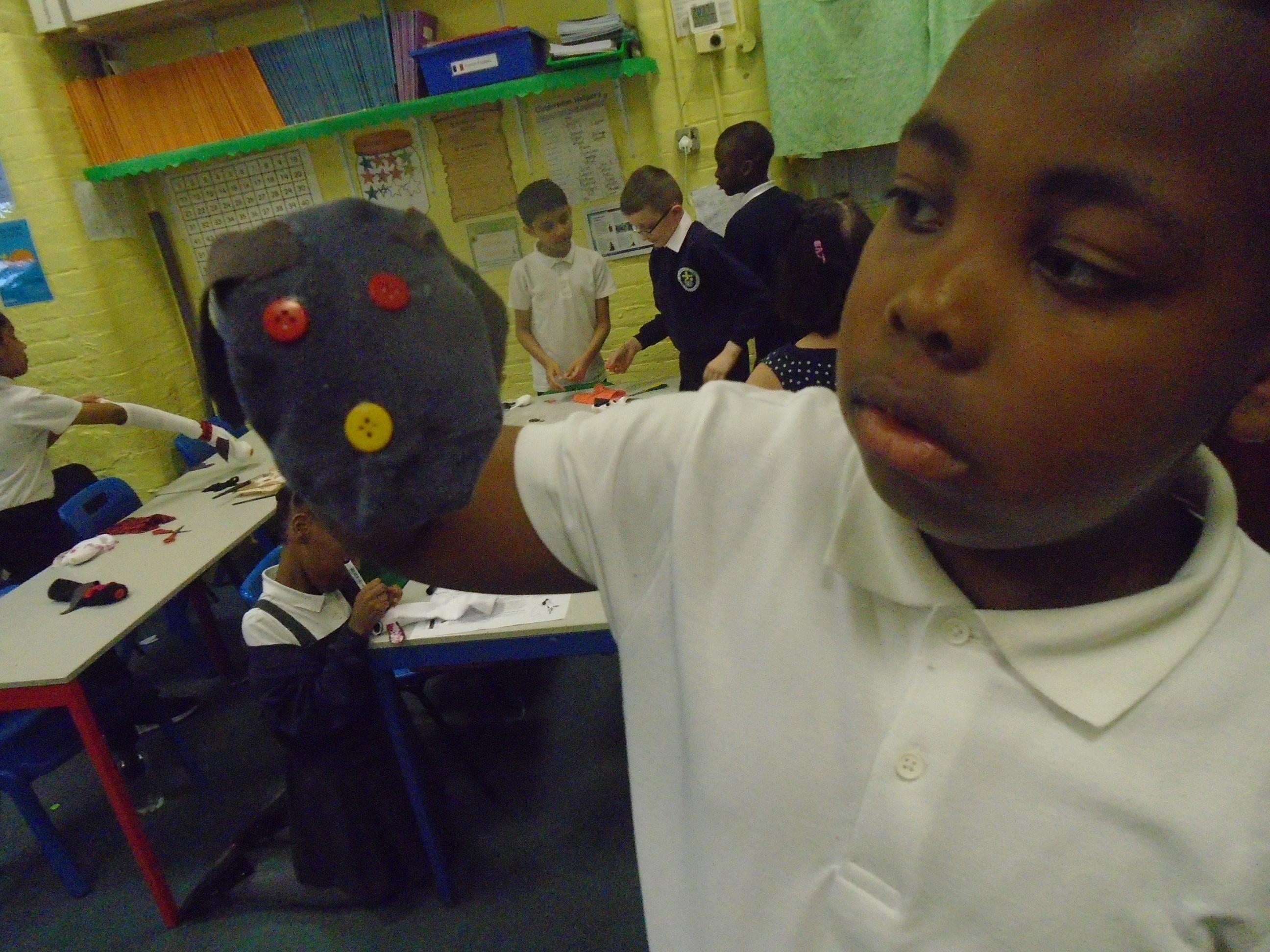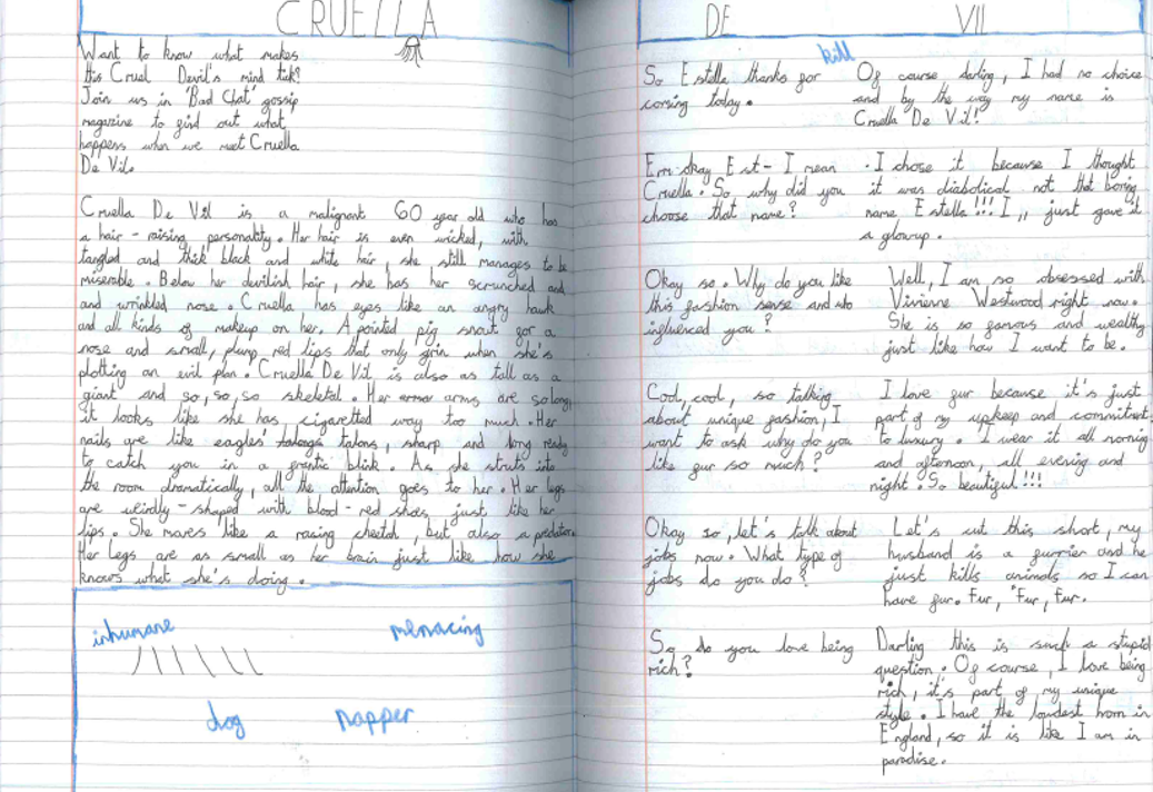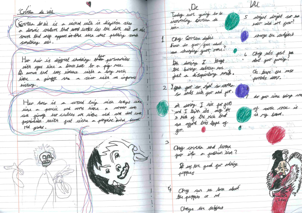 First, we learned about Cruella De Vil, and wrote a diabolical description and an interview with her for a magazine article for "Bad Chat" magazine. Then, we created flipbook animations based on the book "The One Hundred and One Dalmatians" by Dodie Smith. Finally, we created our very own sock puppet creations!