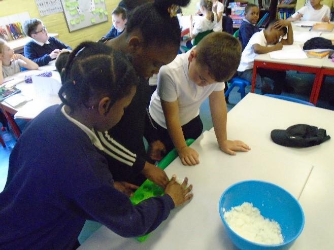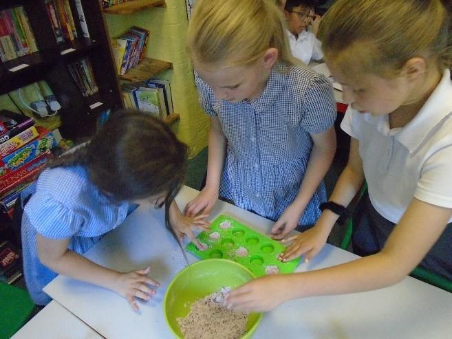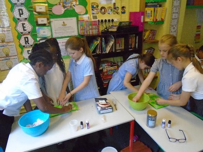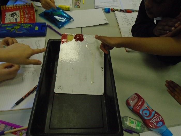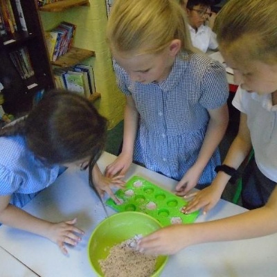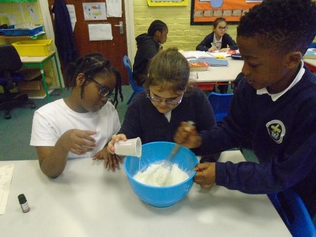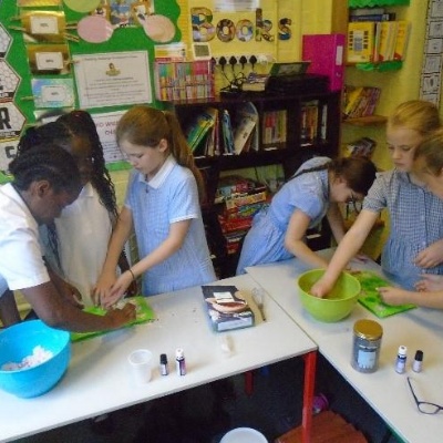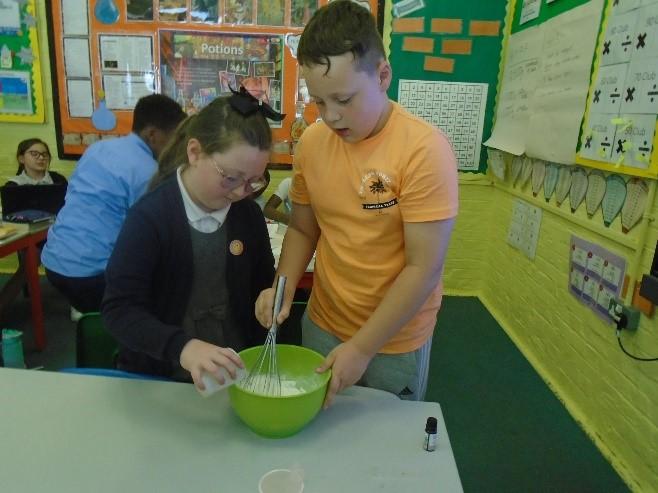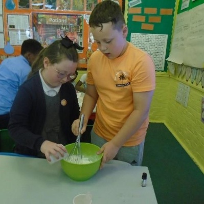 In term 5, we have been learning about Potions. We began with a curiosity trail, following clues to lead us to our first book. Can you guess what it was? We have really enjoyed the practical elements of this term as it has involved lots of science experiments. We have been learning about solids, liquids and gases and how to work scientifically. We started by sorting and categorising containers based on whether they contained a solid, liquid and gas and investigated safety labels on chemical containers. We created a safety Label for the potion bottle from Alice's Adventures in Wonderland and discussed whether or not we would drink the shrinking potion. We have carried out two comprehensive science investigations to investigate our key questions: Are all Liquids Runny? and Is Custard a Liquid? We were very surprised with our results! In addition, we read and learned about Shakespeare's Romeo and Juliet and Macbeth. We created poetry based on the witches spell in Macbeth as well as making heart shaped chocolates to demonstrate our knowledge of changing state. We have used our inspiration this term to work collaboratively to create a piece of artwork by melting wax crayons with a hairdryer. As part of our enterprise learning, we have used our new scientific knowledge to create bath bombs by combining ingredients and following instructions. We have then independently labelled them according to the safety labels we had previously created. It has been a jam packed, fun filled term.