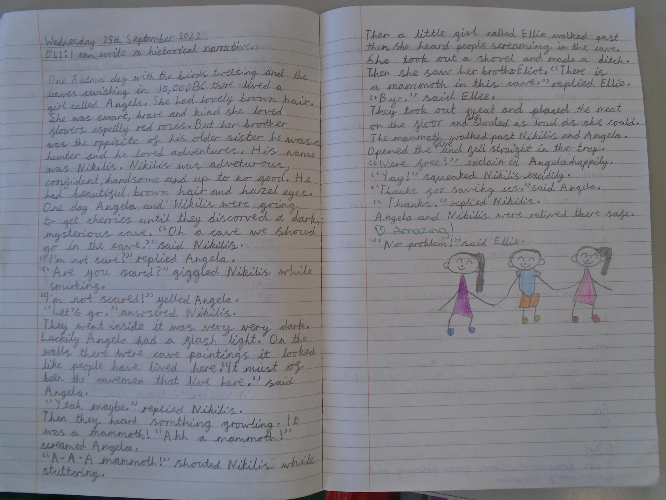 Throughout terms 1 and 2, St. Anne have been exploring their history topic, 'Through The Ages.' The children have learnt about all three periods of British prehistory: the Stone Age, the Bronze Age and the Iron Age. St. Anne have investigated prehistoric settlements, made cave paintings, written newspaper reports about the end of the Iron Age, instructions about how to make a Bronze Age axe and a narrative set in the Stone Age.