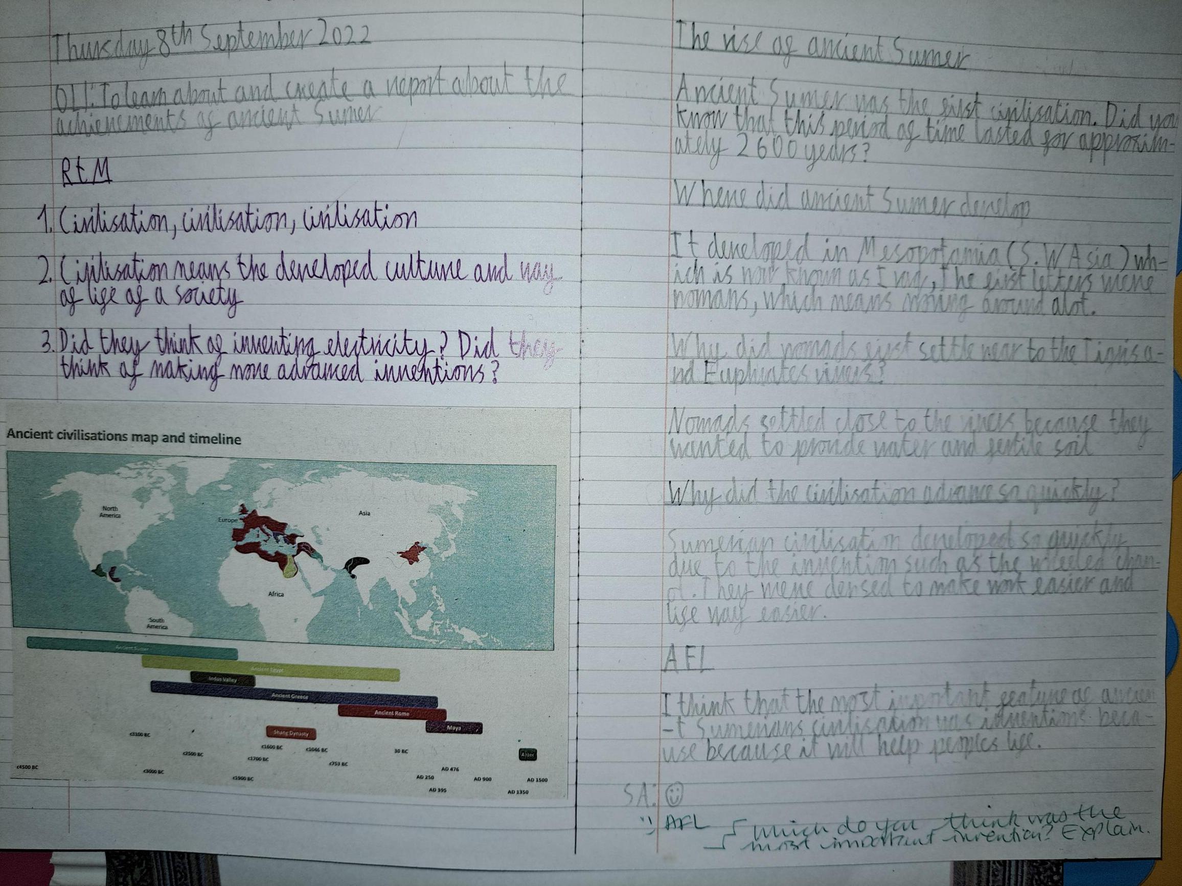 Over Term 1 & 2 children will learn about the history of three of the world’s first ancient civilisations: ancient Sumer, ancient Egypt and the Indus Valley civilisation. Children will learn about the rise, life, achievements and eventual end of each civilisation.