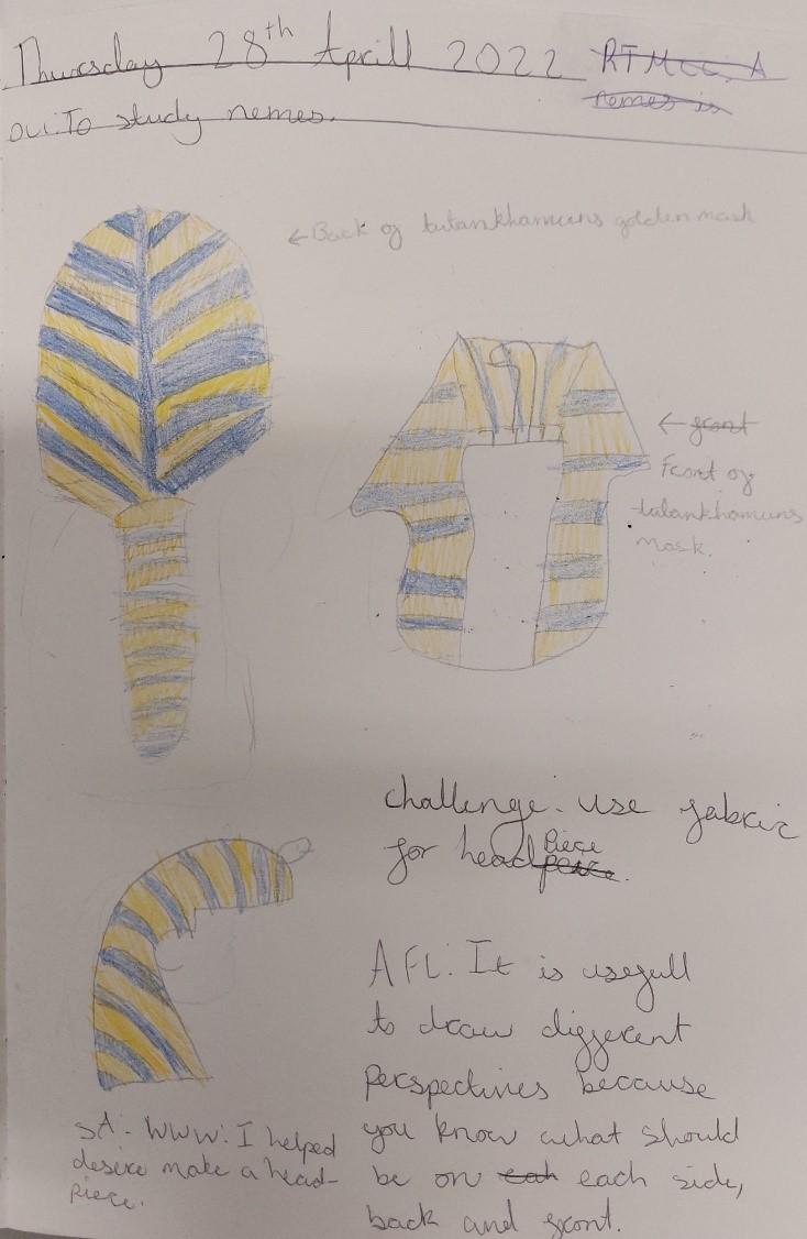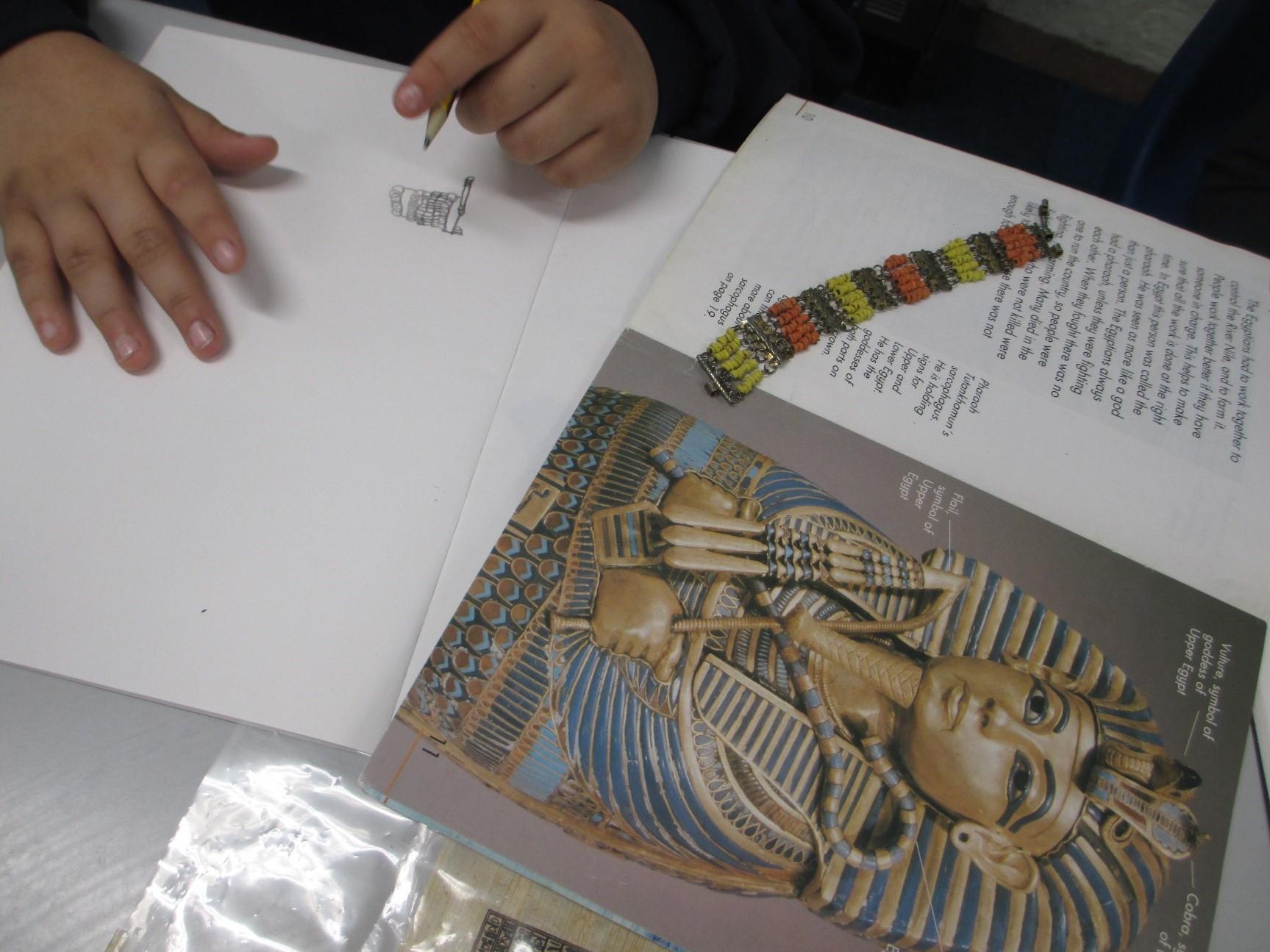 This term, St George have been studying the fascinating ancient civilisation, the Egyptians. From artefacts to pharaohs, Gods and rituals, we have enjoyed learning more and more. The class also wrote some fabulous, suspenseful stories using the knowledge they have gained this term. We sketched and studied ‘nemes’, the Ancient Egyptian headdress worn by pharaohs. Our challenge was to then attempt a ‘prototype’ of the nemes for a costume – these children nailed it! We started by studying hieroglyphics and then moved into a study and sketch of Egyptian amulets. We then developed our ideas by creating our own amulets out of clay. To take our skills further, we painted our amulets and some of us even made decorative beads to embellish them with.