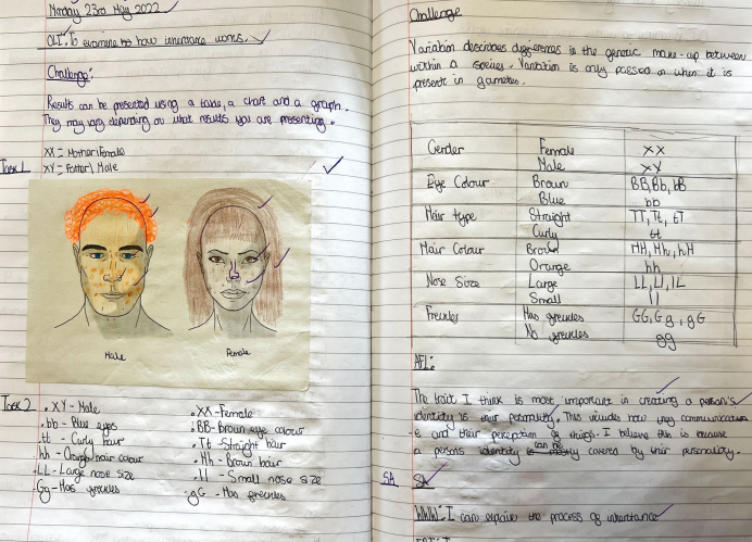 This term pupils have been exploring what 'ID' means to them. We have created persuasive web pages encouraging members to join our friendship groups, considering what makes us who we are. They have also investigated how individual characteristics are passed from parents to offspring, including traits such as hair colour, eye colour and freckles. Lastly, they carried out market research to design and make their very own tie-dye tote bags that reflected who they were and applied a variety of techniques to complete them.