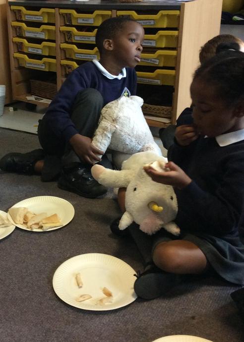 We had a teddy bears picnic, linking to our story of the week. The teddy bears in the story explored the woods, and we explored photos of special places in our area.