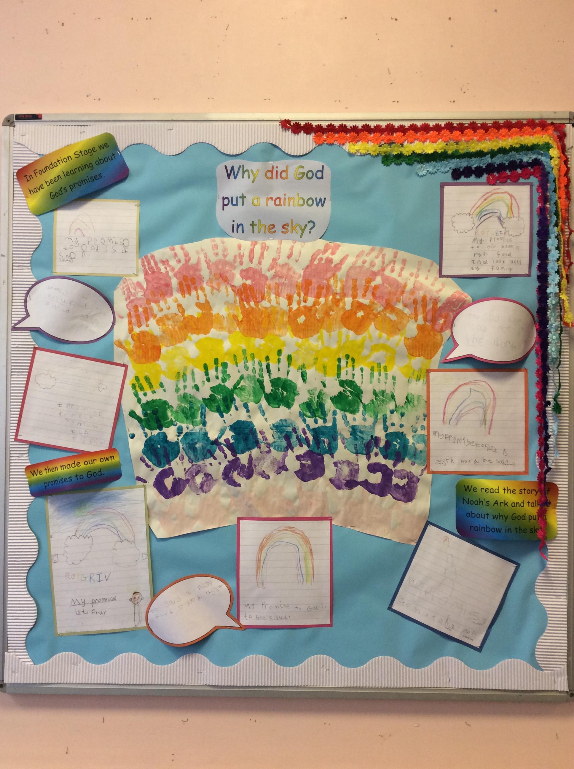 This term in RE, we have thought about 'Old Testament Stories', in particular the promises that God made to different people in the stories. We really enjoyed the story of Noah's Ark and that God made a promise by putting a rainbow in the sky. We then drew our own rainbows and made our own promises to God.